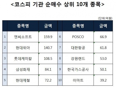 [코스피 기관 순매수 상위 10개 종목]