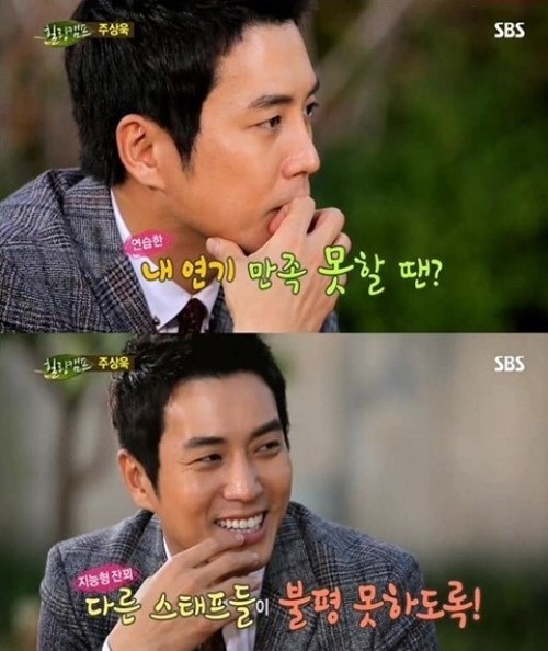 지난 14일 방송된 SBS 예능프로그램 ‘힐링캠프, 기쁘지 아니한가’에 출연한 주상욱은 MC 김제동이 주상욱의 별명 ‘욱상욱’을 언급하며 “너무 욱 하니까 촬영장에서 대놓고 욕을 하기도 하냐?”고 묻자, 주상욱은 “하긴 하는데 내가 나한테 한다”고 답했다.