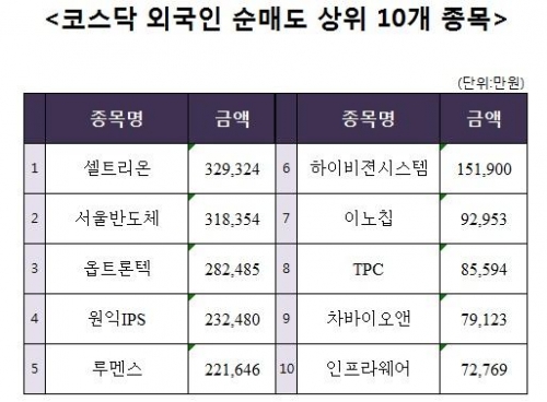 [코스닥 외국인 순매도 상위 10개 종목]