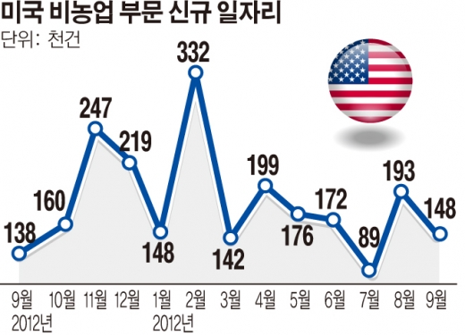 미국 노동부는 22일(현지시간) 9월 비농업 부문 신규 고용이 14만8000건을 기록했다고 발표했다. 이는 블룸버그 전망치인 18만건에 크게 못 미치는 것이다.