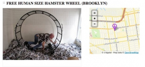 미국 뉴욕에 거주하는 한 남성은 최근 소셜네트워킹서비스(SNS)를 통해 '사람용 쳇바퀴'를 공짜로 주겠다는 글을 올려 네티즌들의 관심을 끌고 있다.