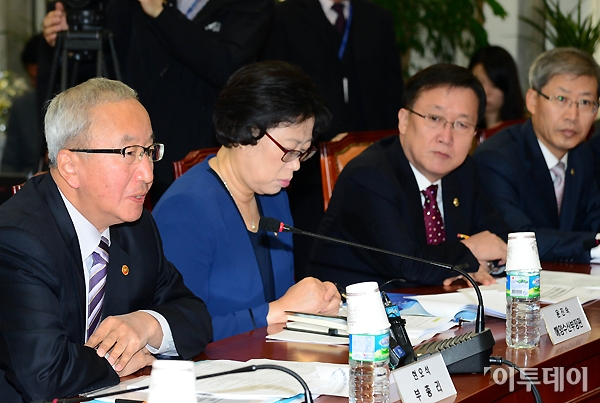 현오석 경제부총리 겸 기획재정부 장관이 5일 오전 여의도 국회 새누리당 원내대표실에서 열린 경제활성화 대책관련 법안 처리를 위한 당정협의에서 모두발언을 하고 있다. 노진환 기자 myfixer@