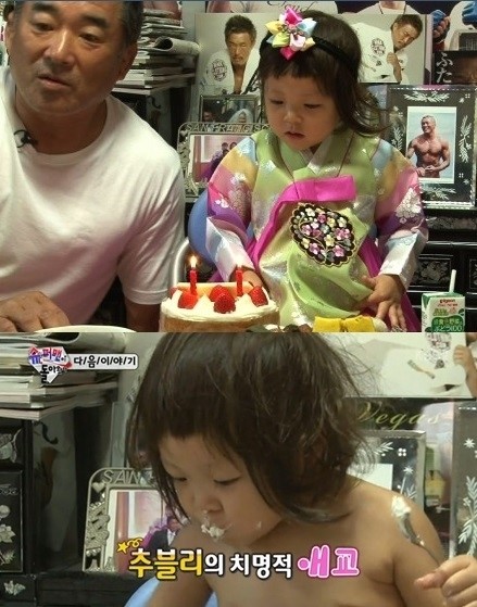 마침 추사랑의 생일을 맞이한 추성훈의 부모님은 추사랑을 위해 손수 준비한 생일상과 깜찍한 한복을 준비했다. 추사랑은 파스텔톤의 한복을 곱게 차려입고 치명적인 귀여움을 뽐냈다.