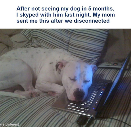 그런데 통화가 끝나고 난 뒤에도 개는 노트북 곁을 떠나지 못했다. 주인이 그립고 그리웠던 것이다. 사진은 주인의 어머니가 촬영 전송해 준 것으로 알려졌다.