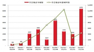 ▲9월30일~11월26일 미국달러옵션 거래추이(단위: 계약) 자료=한국거래소