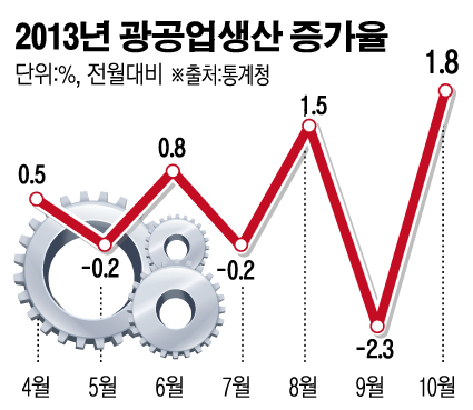 29일 통계청이 발표한 ‘10월 산업활동동향’에 따르면 지난달 광공업생산 지수는 지난 9월보다 1.8% 올라 11개월만에 가장 큰 폭의 상승세를 나타냈다. 지난해 같은 달과 비교하면 3.0% 급증했다. 이 같이 큰 폭의 상승세를 나타낸 이유는 일부 자동차업체 파업 종료로 인한 큰 폭의 자동차 생산 증가와 내수·수출 호조에 힘입은 것으로 풀이됐다.