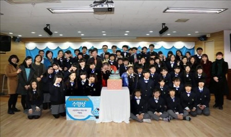 이번 행사는 교문중 학생들이 지난 6개월간 '물 성장 프로젝트'에 참여해준 보답으로 이뤄졌다. 교문중 학생들은 지난 5월부터 11월까지 음료 섭취를 자제하고 하루 8잔의 물을 마시는 습관을 갖기 위한 프로젝트에 참여해 왔다. 이날 행사는 우수 참여학생들에 대한 시상과 장학금 전달식등으로 진행됐다.