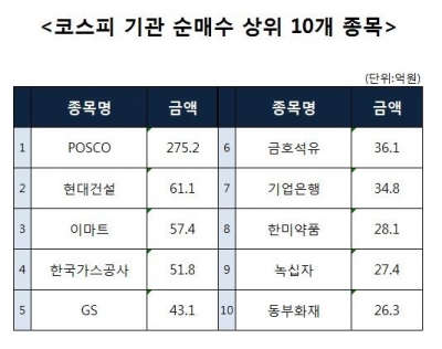 [코스피 기관 순매수 상위 10개 종목]