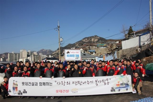 이날 전달된 연탄은 롯데건설 임직원이 급여 중 일부를 기부하는 금액과 동일한 금액을 회사도 매칭해 기부하는 '매칭 그랜트 제도'로 조성된 '사랑나눔 기금'을 통해 마련됐다.