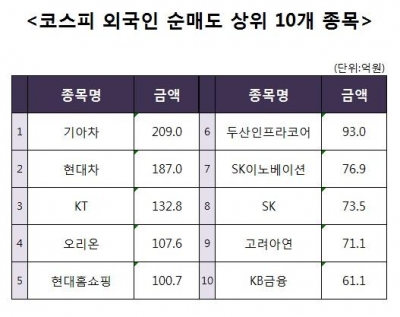 [코스피 외국인 순매도 상위 10개 종목]