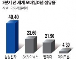 PC용 D램을 포함한 전체 D램 시장에서 모바일 D램의 비중은 1분기 29%에서 31% 확대됐다. 업계에서는 모바일 D램 비중이 커질수록 삼성전자의 독주 체제가 더욱 강화될 것으로 전망하고 있다.