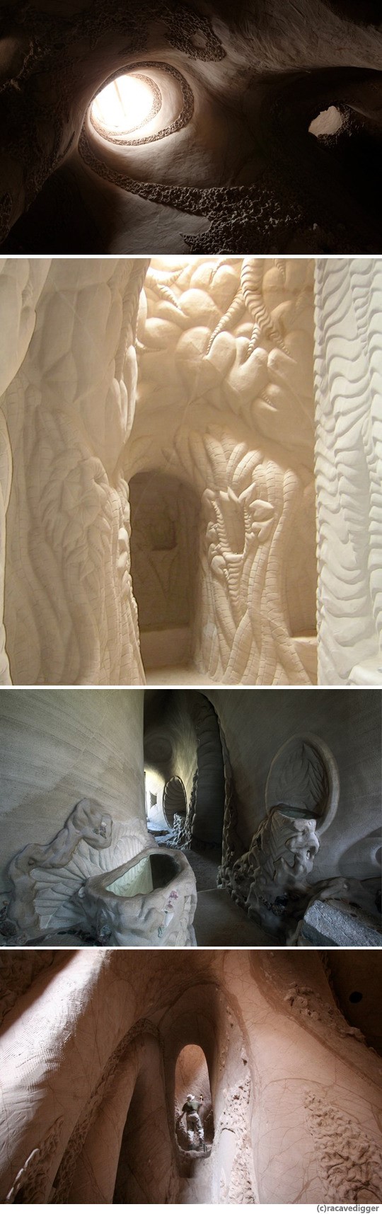 공개된 사진은 오직 곡괭이와 삽 등 간단한 도구로 만들어진 동굴의 모습이다. 곡괭이로 판 예술 동굴은 미국의 아마추어 조각가 라 폴레트가 만든 것이다.