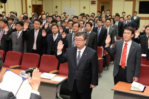 이날 행사는 최근 사회적으로 문제가 되고 있는 금융기관의 각종 비리를 사전에 예방하고 하반기 경영목표 달성을 위한 결의를 다지기 위해 마련됐으며 서울 지역 181개 지점 지점장들이 모두 참석했다.