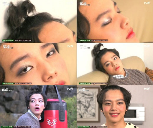 5일 방송된 tvN 시트콤 '감자별 2013QR3' 34회에서는 노준혁(여진구 분)이 누나 노수영(서예지 분)에 의해 여장을 했다.