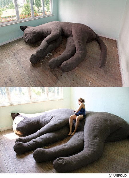 공개된 사진 속에는 고양이를 닮은 초대형 소파의 모습이 담겨 있다. 방 하나를 가득 채울 정도로 엄청난 크기의 고양이는 창문 아래서 잠을 자는 듯 누워있다.