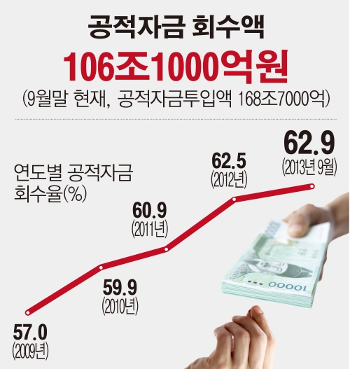 금융위에 따르면 1997년 조성된 공적자금은 168조7000억원이 지원됐고 이 가운데 106조1000억원이 회수됐다.