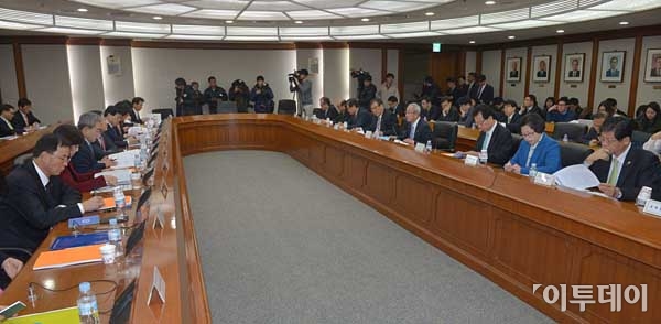 현오석 부총리 겸 기획재정부 장관(오른쪽에서 네번째)이 11일 오전 서울 영등포구 여의도동 한국수출입은행에서 열린 경제장관회의를 주재하고 있다. 최유진 기자 strongman55@
