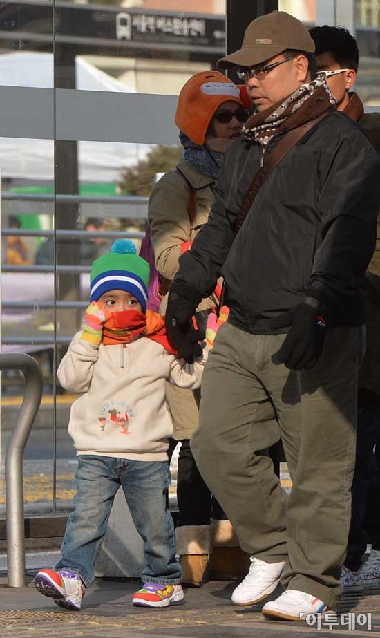 서울이 영하의 쌀쌀한 날씨를 보인 11일 오후 서울역 앞에서 한 외국인 관광객 가족이 두터운 옷을 입고 발걸음을 옮기고 있다. 최유진 기자 strongman55@