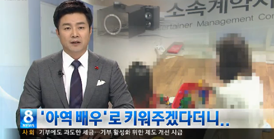 15일 방송된 SBS ‘8뉴스’는 “아역배우로 키워주겠다며 부모들에게 계약금을 받은 연예기획사가 폐업을 하고 사라졌다. 피해자는 지금까지 200명이 넘었고, 피해액은 5억원으로 추정된다”고 보도했다.
