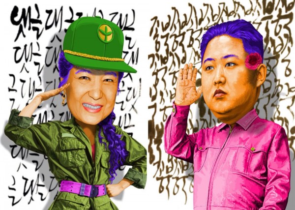 지난 17일 팝아티스트 이하(본명 이병하)씨가 서울 도심에 배포한 박근혜 대통령(왼쪽)과 김정은 북한 국방위원회 제1위원장을 풍자하는 그림. 작가는 이 유인물을 서울 시청·합정·사당역 등 도심 10여 곳에 배포했다.