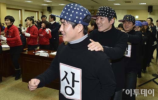 농협유통이 18일 오전 서울 서초구 농협하나로클럽 양재점에서 '제 2회 CS(고객만족) 율동 경연대회'를 개최하고 있다.
