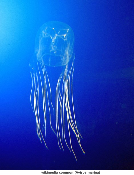 사진 속에는 아이언맨 가면 같은 모양의 해파리 모습이 담겨있다. 찌푸린 사람 얼굴을 연상시키기도 한다.