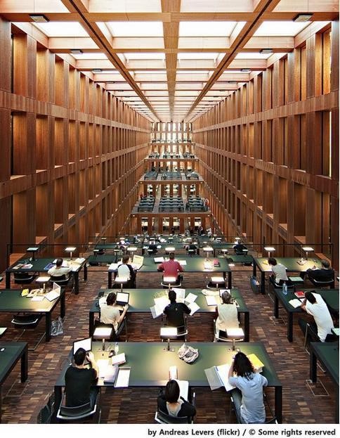 사진은 독일 베를린 훔볼트 대학교 도서관으로 알려졌다. 개방형 계단식 도서관이라는 특성상 프라이버시가 전혀 지켜질 수 없는 공간으로 불린다.