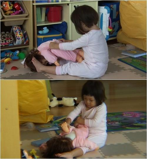 추사랑은 단순히 인형을 가지고 노는 것이 아니라 아빠 추성훈이 자신에게 직접 해주던 베이비 마사지 동작을 그대로 재연해 놀라움을 선사했다.
