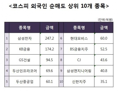 [코스피 외국인 순매도 상위 10개 종목]