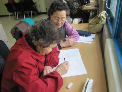 2년째 열리고 있는 '은빛생각교실'은 한글초급기초반과 한글초급입문반 등 2개 반으로 운영된다. 작년에는 31명이 이 프로그램을 수료했다.