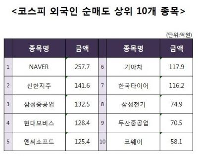 [코스피 외국인 순매도 상위 10개 종목]