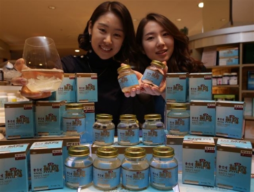 현대백화점에 따르면 제비침에는 콜라겐이 많이 함유돼 있어 예전부터 중화권 나라에서 황제가 먹는 보양식으로 유명하다. 판매가격은 75g 6병에 7만9000원이다.