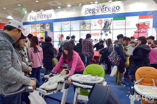 베페 베이비페어가 16일 서울 강남구 삼성동 코엑스에서 열린 가운데 관람객들이 다양한 육아용품을 둘러보고 있다. 제25회 베페 베이비페어는 임신·출산·육아·교육 관련 국내외 대표 브랜드가 참여해 오는 19일까지 나흘간 열린다. 최유진 기자 strongman55@