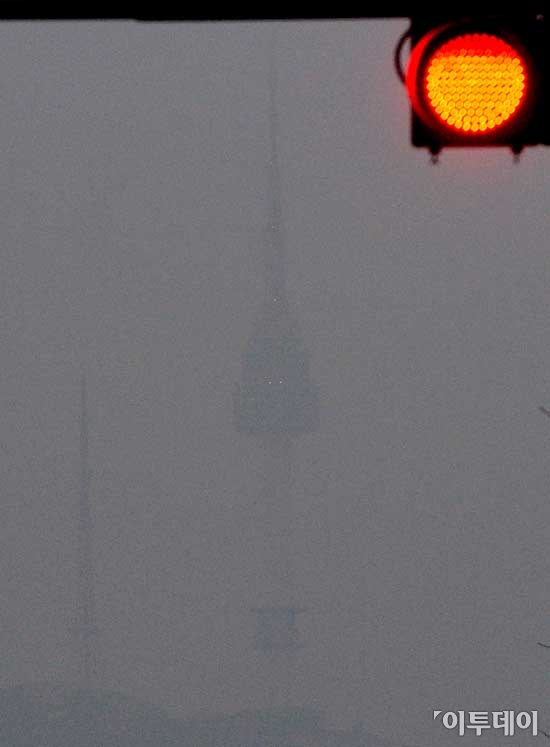 중국발 스모그 유입으로 인해 미세먼지 비상이 걸렸다. 서울에 올해 들어 처음 초미세먼지주의보 예비단계가 발령된 16일 오후 서울시내에서 바라본 남산타워가 형체를 알아보기 힘들 정도로 뿌옇게 보인다. 최유진 기자 strongman55@