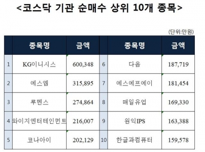 [코스닥 기관 순매수 상위 10개 종목]