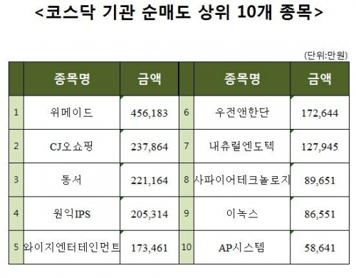[코스닥 기관 순매도 상위 10개 종목]