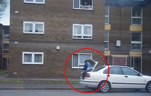 영상 속 피자배달원이 지동차 트렁크에서 피자를 꺼내 들고 건물로 다가자가 3층에서 피자를 기다리던 손님이 창문으로 아래 남성에게 수신호를 보낸다. 잠시 후 배달원은 한 치의 망설임도 없이 들고 있던 피자를 던졌고, 3층 남성은 피자박스를 기가 막히게 잡아낸다.
