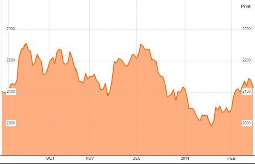 부동산시장에 대한 우려로 중국증시 상하이종합지수는 이날 전일 대비 1.8% 급락한 2076.69로 마감했다. 상하이지수는 장중 2%까지 빠지기도 했다.
