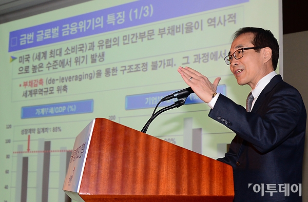 김준경 KDI 원장이 11일 오전 여의도 63컨벤션센터에서 열린 금융투자업계 CEO 간담회에 참석해 ‘한국경제의 전망과 정책과제’를 주제로 강연하고 있다. 노진환 기자 myfixer@