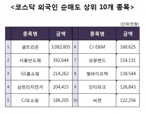 [코스닥 외국인 순매도 상위 10개 종목]