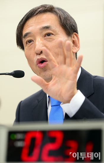 이주열 한국은행 총재후보자가 19일 오전 여의도 국회 기획재정위원회 전체회의에서 열린 인사청문회에 참석해 의원들의 질의에 답변하고 있다. 노진환 기자 myfixer@