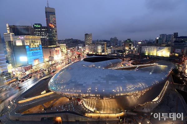 대지면적 6만2692㎡, 연면적 8만6574㎡, 지하 3층, 지상 4층(높이 29m)의 규모의 동대문디자인플라자는 건축가 자하 하디드(Zaha Hadid)가 설계했으며 5개 시설(알림터·배움터·살림터·디자인장터·동대문역사문화공원), 15개 공간으로 구성됐다. 노진환 기자 myfixer@