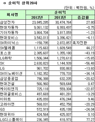 [2013 결산] 코스피 12월 결산법인 순이익(연결기준) 상위 20사