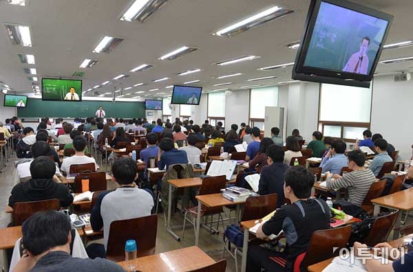 공무원, 대기업 입사시험 등 취업시험을 준비하는 구직 수험생이 100만명에 육박하고 있다. 14일 오후 서울 동작구 대방동 김재규 경찰학원에서 수험생들이 수업을 받고 있다. 구직 수험생 중에는 공무원 시험 준비생이 31만 9,000명으로 가장 많은 것으로 나타났다. 최유진 기자 strongman55@