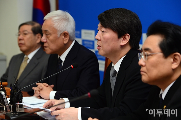 안철수 새정치민주연합 공동대표가 21일 오전 여의도 국회 당대표실에서 열린 최고위원 및 여객선 침몰사고 대책위원장단 연석회의에 참석해 모두발언을 하고 있다. 노진환 기자 myfixer@