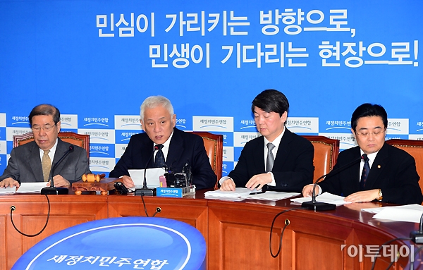 김한길 새정치민주연합 공동대표가 21일 오전 여의도 국회 당대표실에서 열린 최고위원 및 여객선 침몰사고 대책위원장단 연석회의에 참석해 모두발언을 하고 있다. 노진환 기자 myfixer@