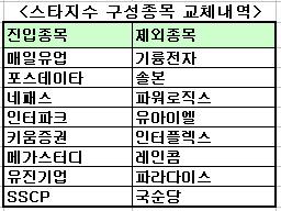 스타지수에는 매일유업, 인터파크, 키움증권 등 8종목이 신규진입하며 기륭전자, 레인콤, 국순당 등은 제외된다.