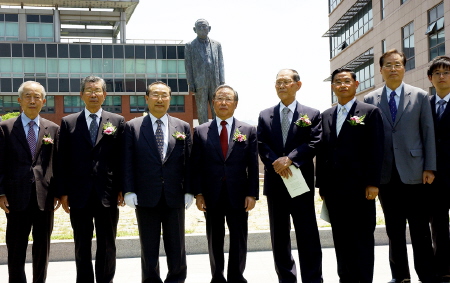 이날 행사에는 조석래 이사장(효성그룹 회장, 사진 왼쪽 네번째)과 정태용 동양공업전문대학 학장(사진 왼쪽 세번째)을 비롯한 가족과 교직원 및 학생 등 200여명이 참석해 생전에 육영사업에 헌신했던 고인의 뜻을 기렸다.