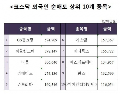 [코스닥 외국인 순매도 상위 10개 종목]