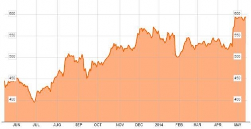 나스닥에서 거래되는 애플의 주가는 오후 12시 현재 0.25% 오른 595.30달러를 기록하고 있다.